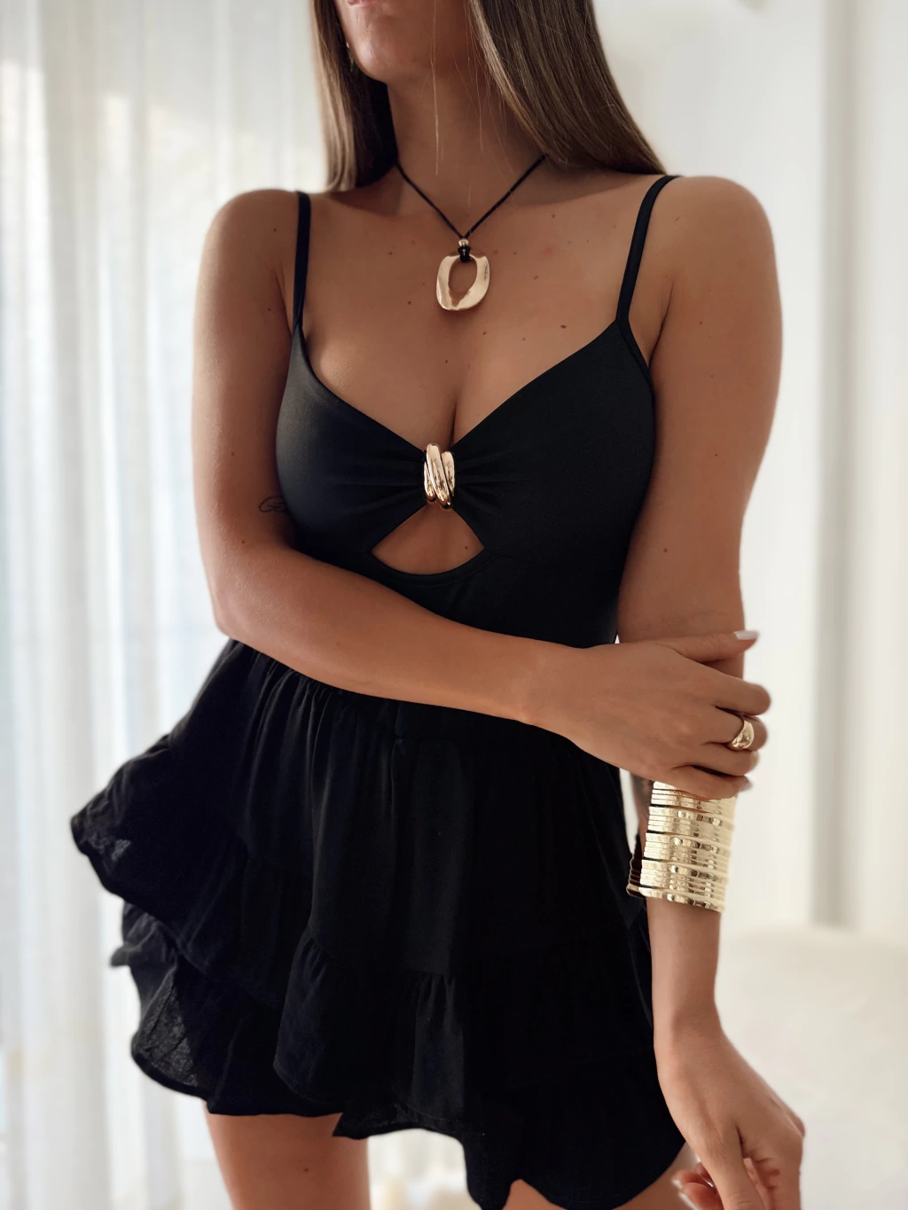 Body de Microfibra , con botones para prender y desprender Aplique dorado en escote