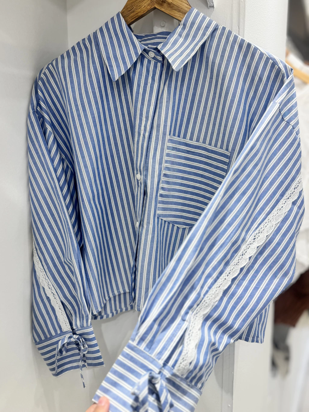 camisa rayada con detalle en mangas y espalda, moñitos en los puños . talle unico