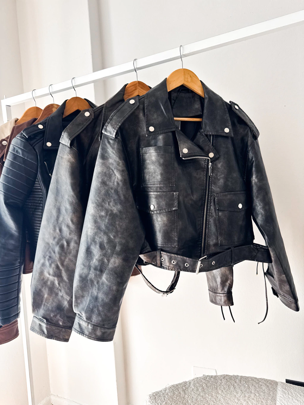 Campera de eco cuero desgastada oversize con detalles en mangas