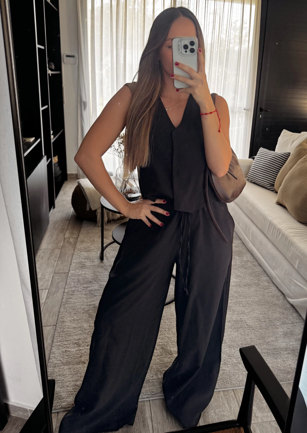 Pantalón palazo con cintura elastizada regulable va hasta un talle 42