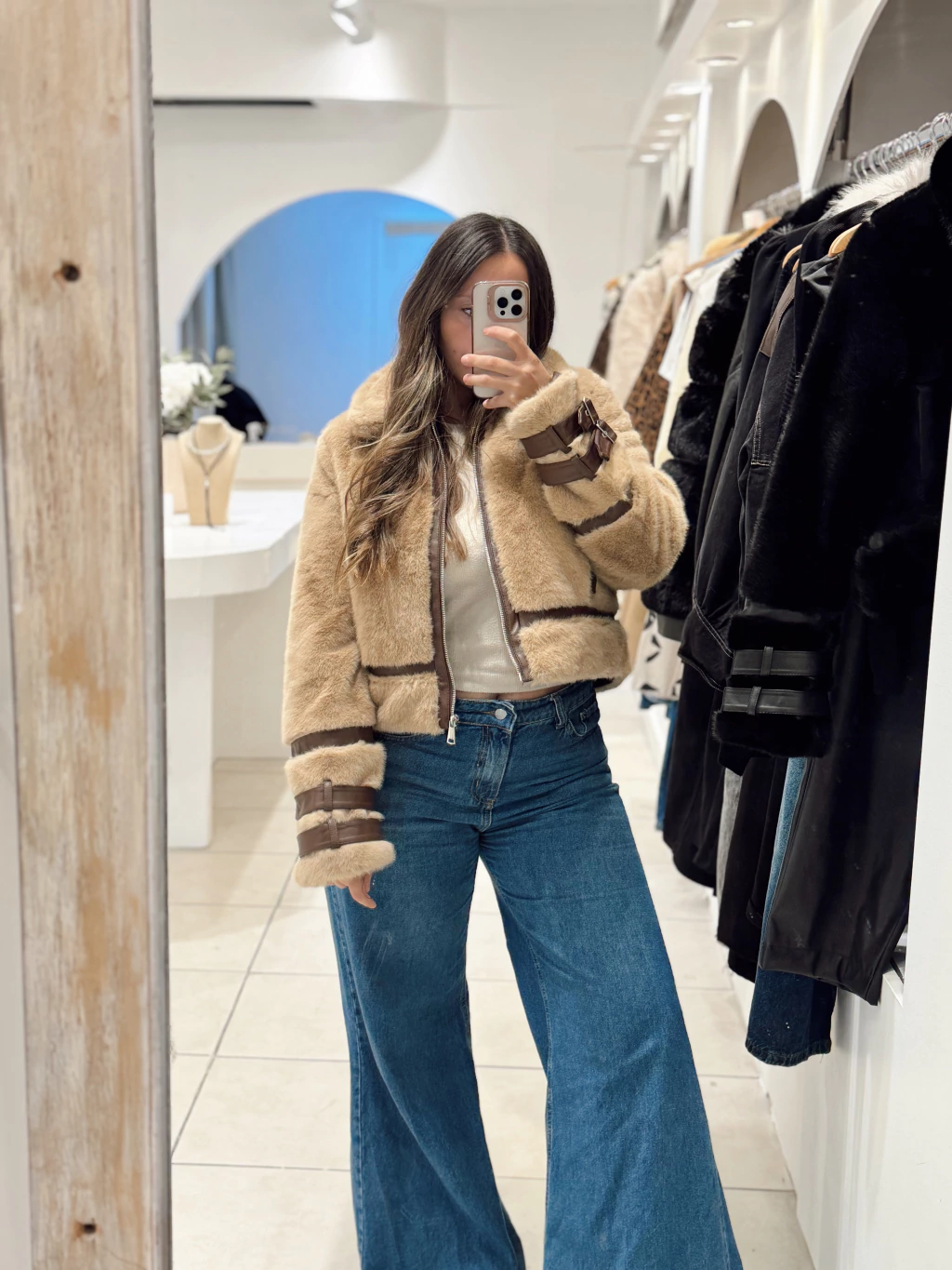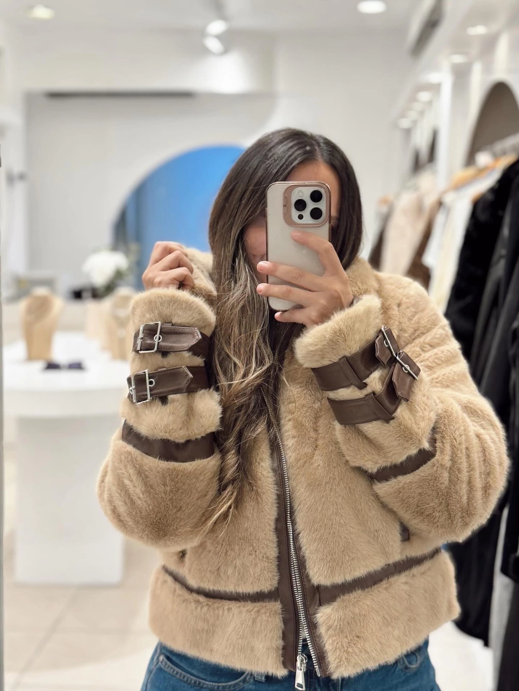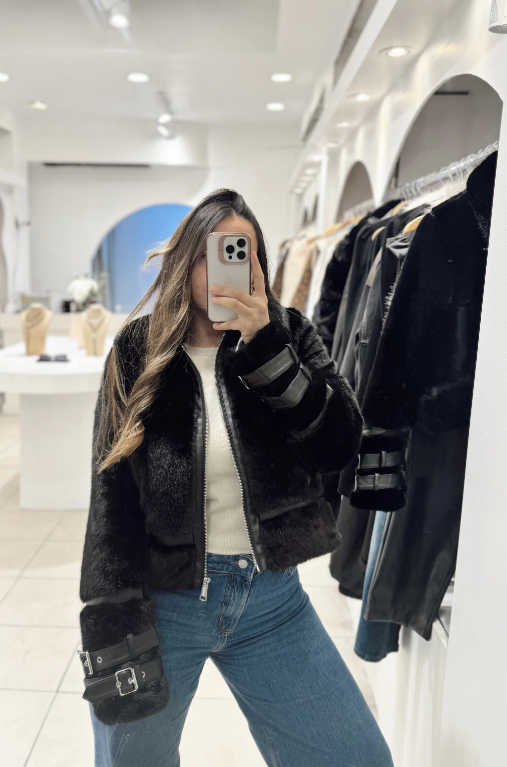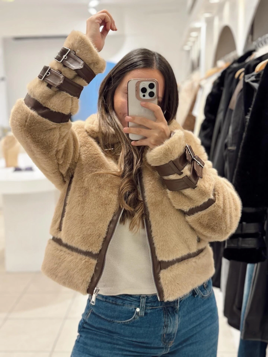 campera de piel sintética con detalles en eco cuero - interior completamente forrado con matelace