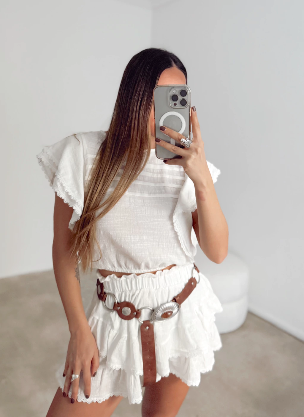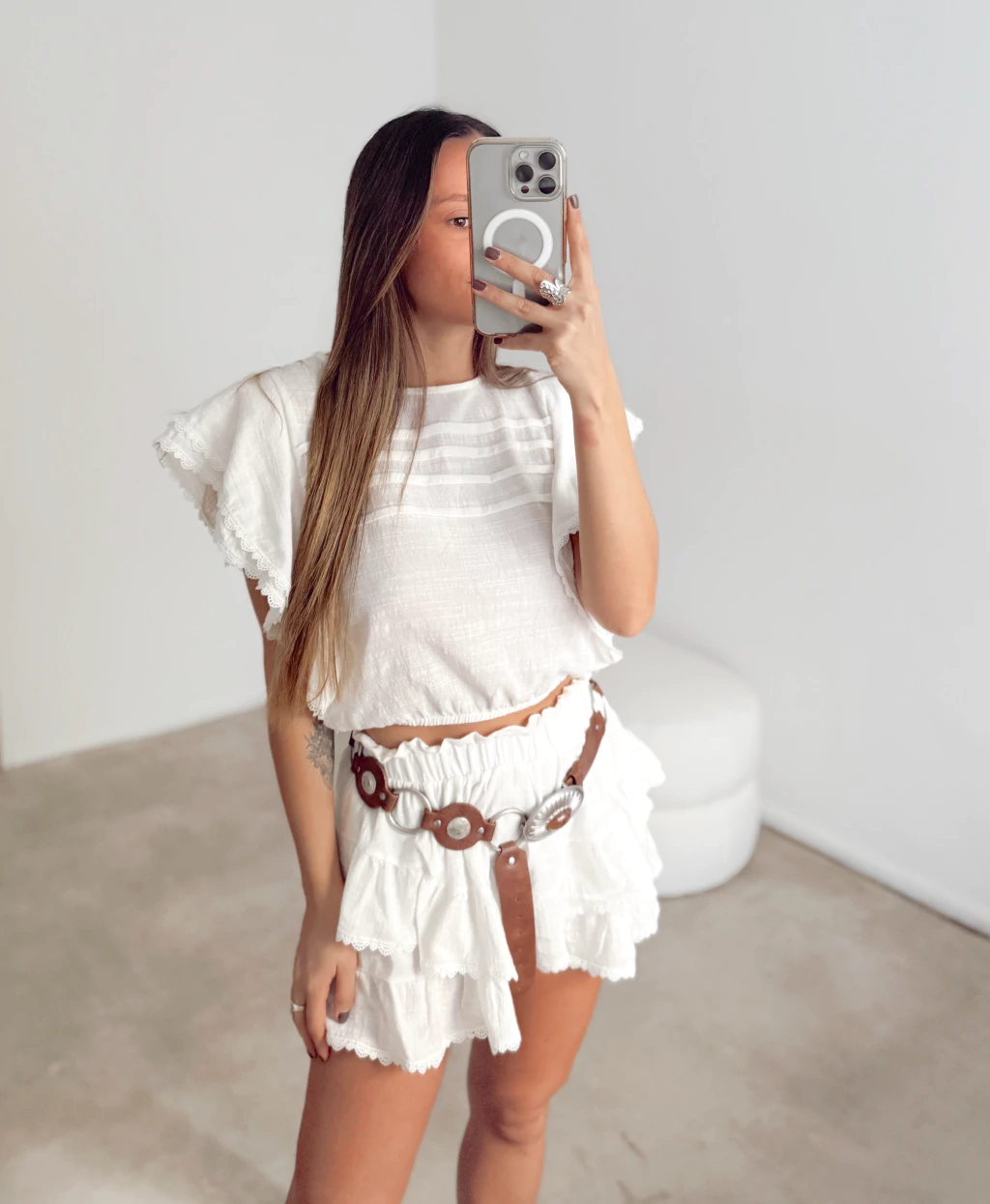 Descripcion: short de cintura elastica. Detalles de volados terminados con puntilla.