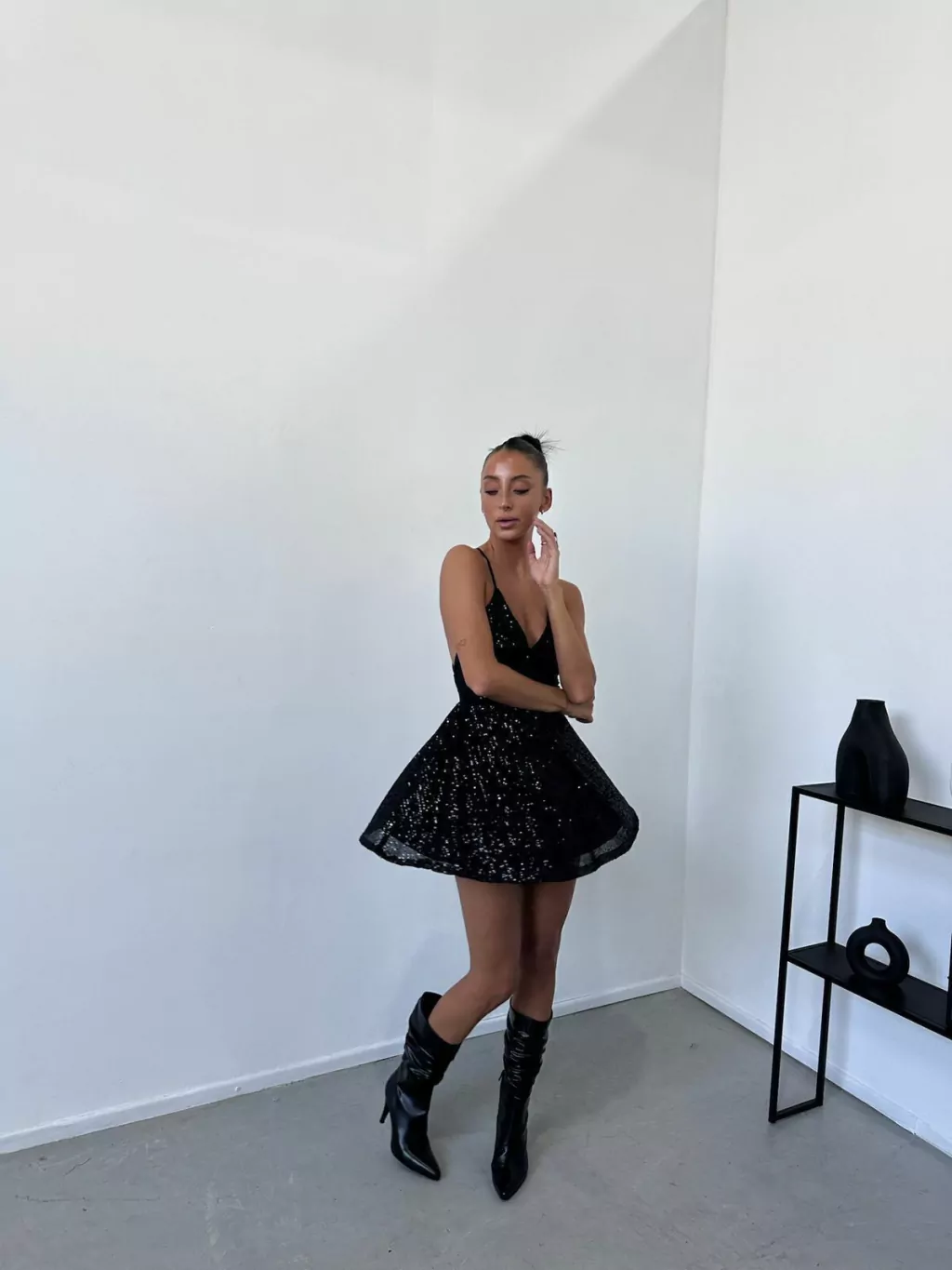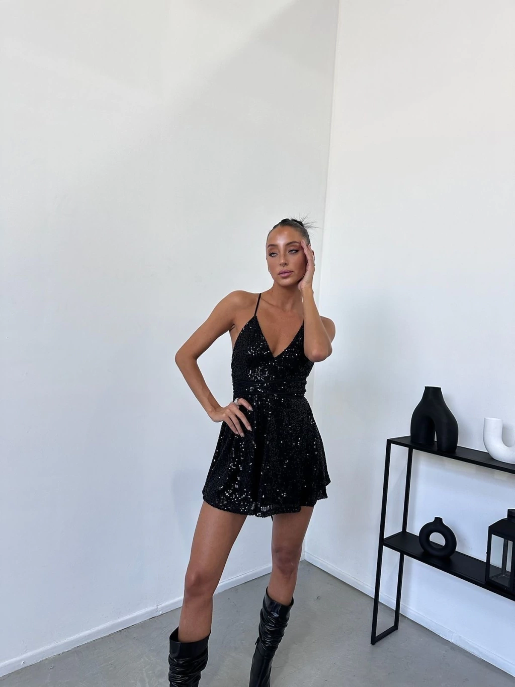 Descubre el Vestido corto lentejuelas Arashi,Este vestido de lentejuelas completamente forrado es ideal para cualquier ocasión especial.